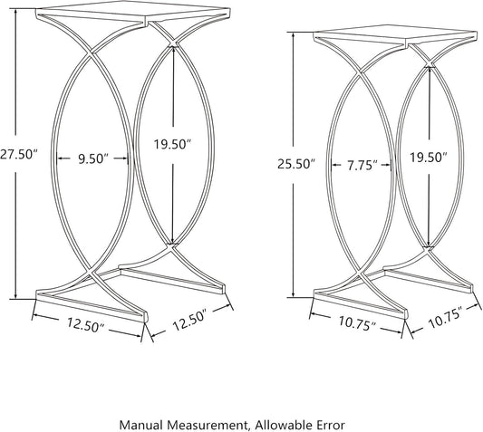Nesting Side Tables, Set of 2 Modern End Tables with Metal Frame & Tempered Glass Top, Coffee Tables Decorative Accent Tables for Small Space Living Room Office - Silver